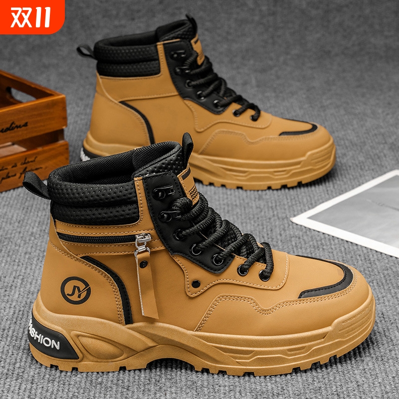 王俊凯同款骆驼金甲大黄靴马丁靴男士防泼水户外休闲高帮工装靴男