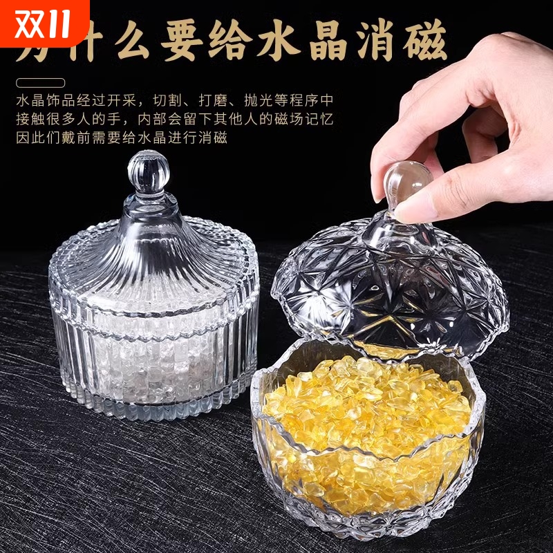 水晶消磁净化碗天然扩香石净化玻璃碗手链饰品容器收纳盒