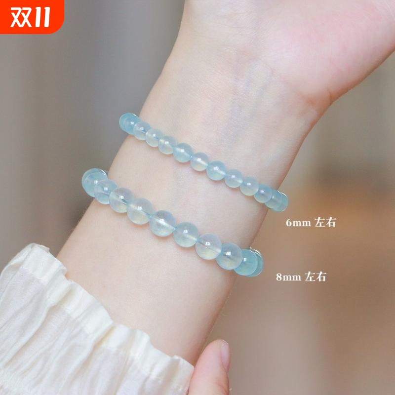 新款天然冰种天然魔鬼海蓝宝补水手链水晶蓝色手串简约小众饰品
