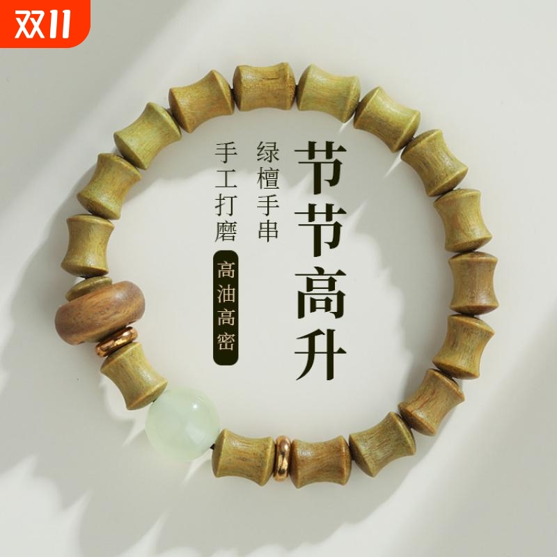 普陀山天然绿檀木手串男佛珠竹节手链盘玩情侣礼物节节檀香佩戴