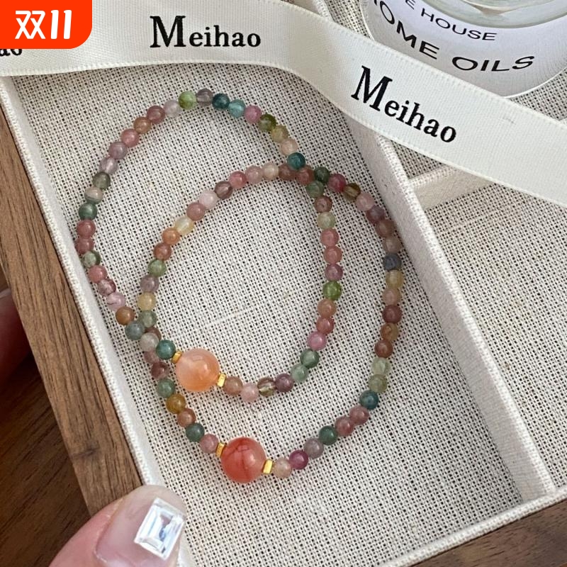 天然碧玺手链串珠弹力绳套装手串女可水洗叠戴少女心首饰聚财朱砂