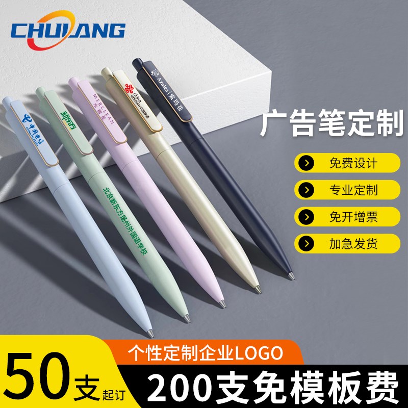 【免定制费】50支定制logo按动广告笔商务签字笔金属漆重手感按