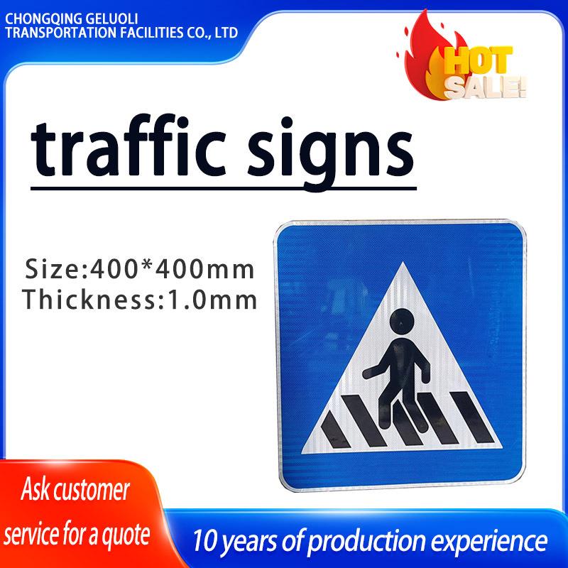 方形蓝色人行横道道路安全提示牌铝板超强反光颜色图案任选