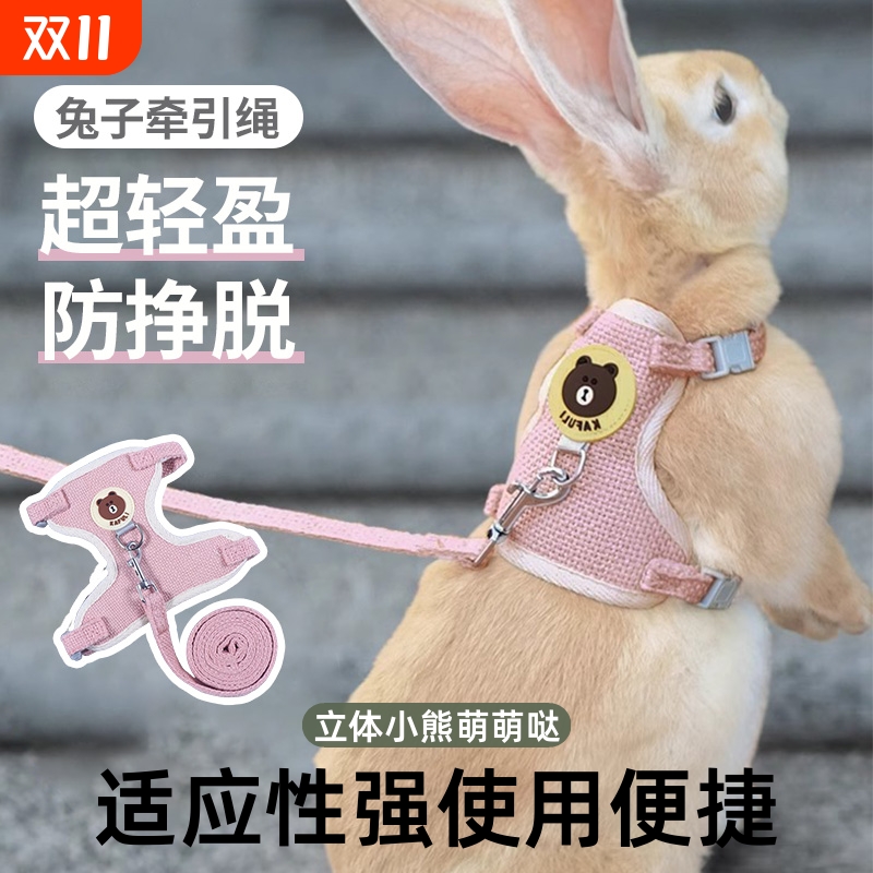 兔子牵引绳防挣脱遛小兔子专用神器背心式可伸缩外出的衣服溜绳子
