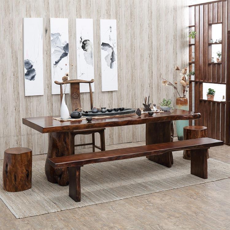 实泡桌椅组合夫新中式功禅意茶台原木茶YS-109大板桌整板复古木