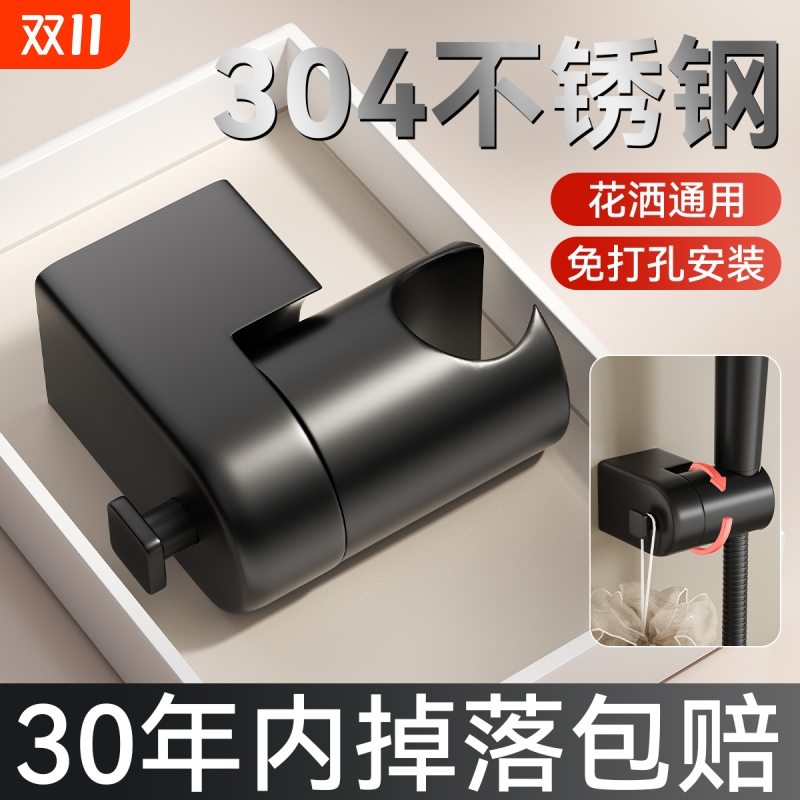 304不锈钢花洒墙座架实心夹座配件手持淋浴底座喷头固定座免打孔