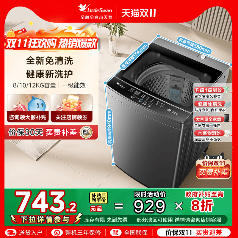 [纯净]小天鹅除螨家用12KG大容量全自动一级能效波轮洗衣机18