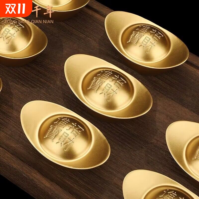 实心沙金元宝黄铜道具摆件招财神合金条客厅聚宝盆装饰乔迁送礼品