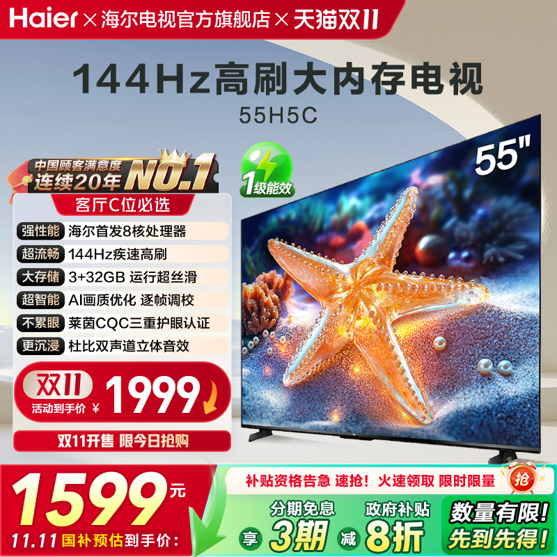 海尔55英寸144Hz高刷护眼电视H5C