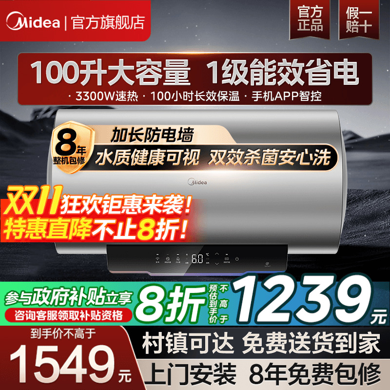 美的1级速热100升大容量电热水器