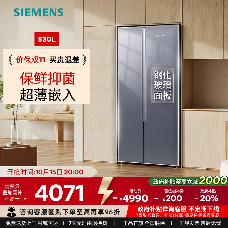 西门子512L对开门超薄平嵌电冰箱