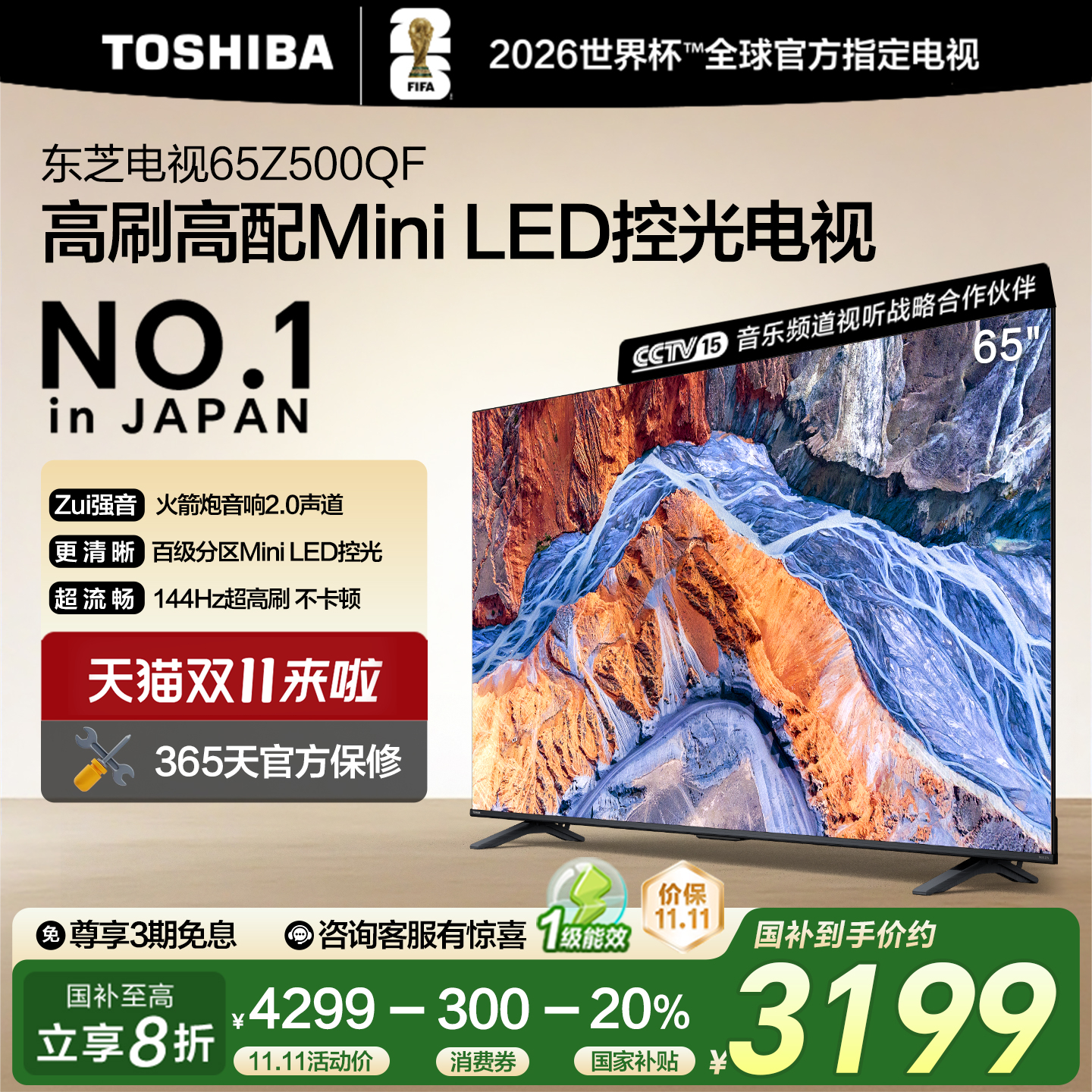 东芝65英寸MiniLED控光电视机