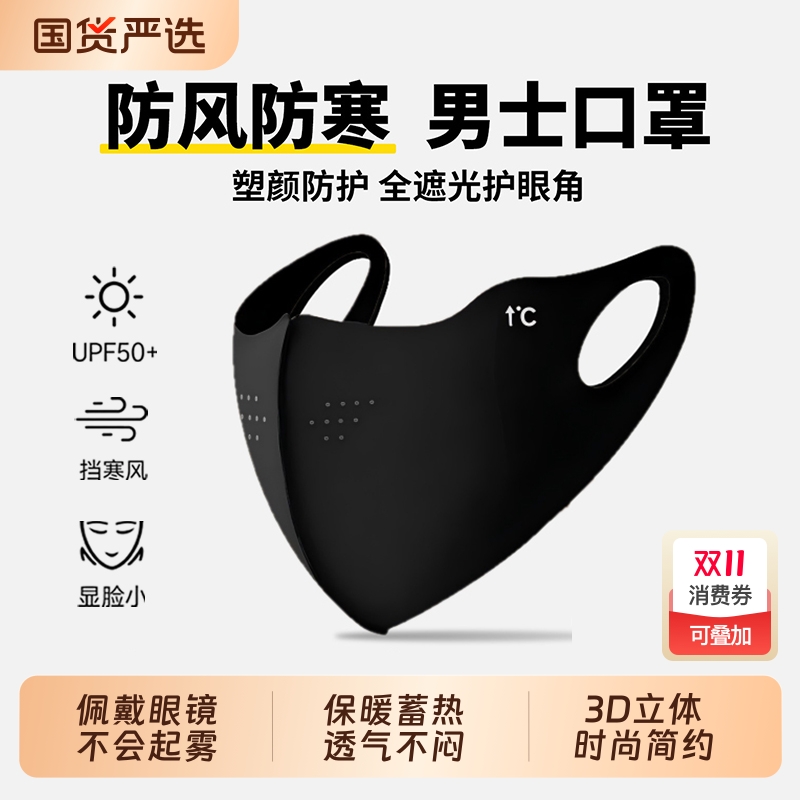 美拉德秋冬保暖口罩骑行防风御寒无痕显瘦修饰小脸型可水洗护眼角