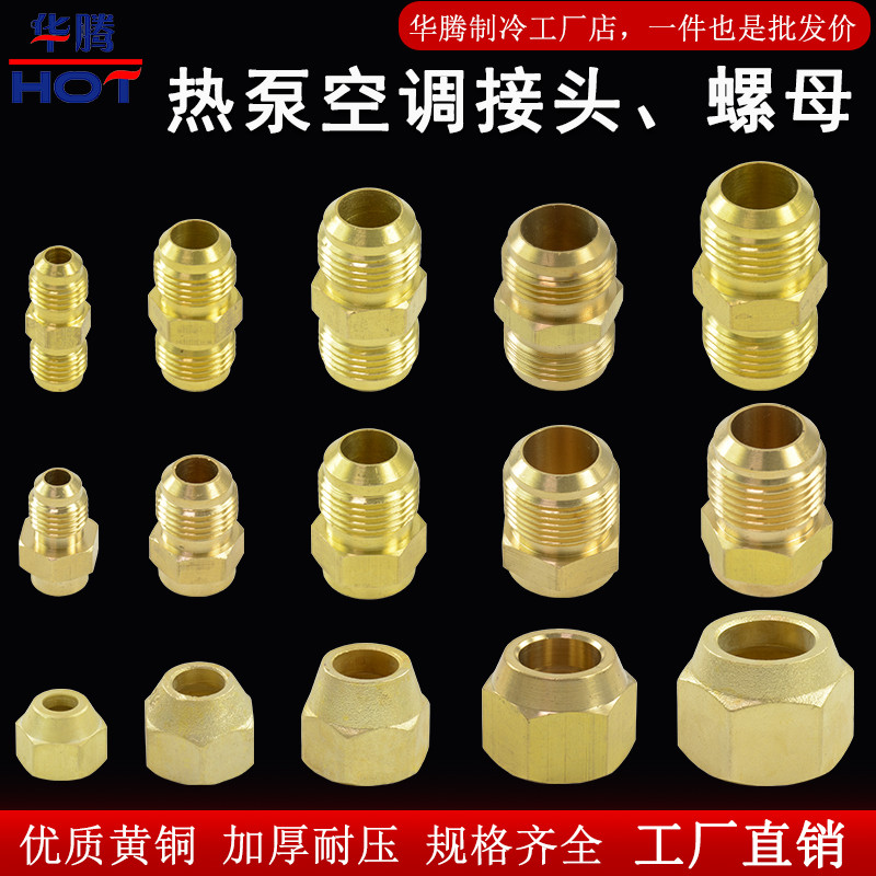 黄铜纳子加厚铜螺母空调免焊接对接头单接头英制铜螺帽加长双接头