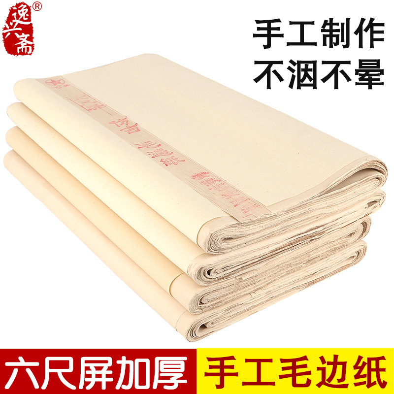 加厚仿古毛边纸书法练习专用无格半生半熟宣纸元书纸竹浆纸四尺六尺屏