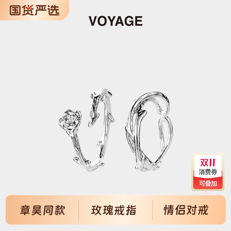 章昊同款荆棘玫瑰开口可调节戒指
