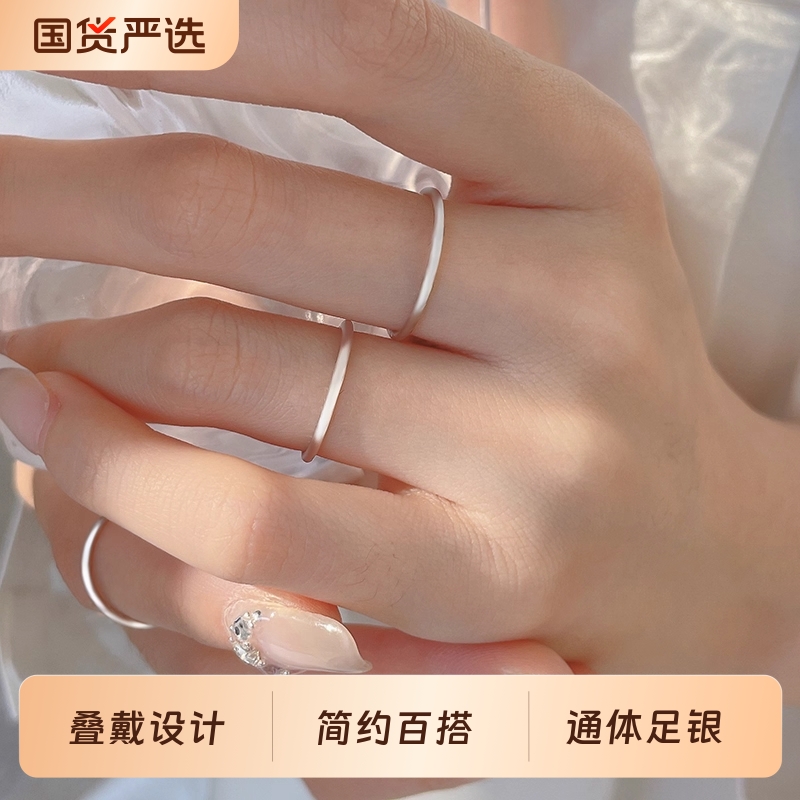 S999足银戒指女小众设计2025新款爆款古法细素圈对戒轻奢高级