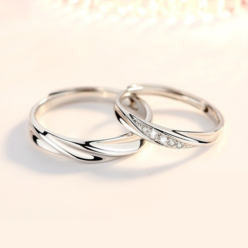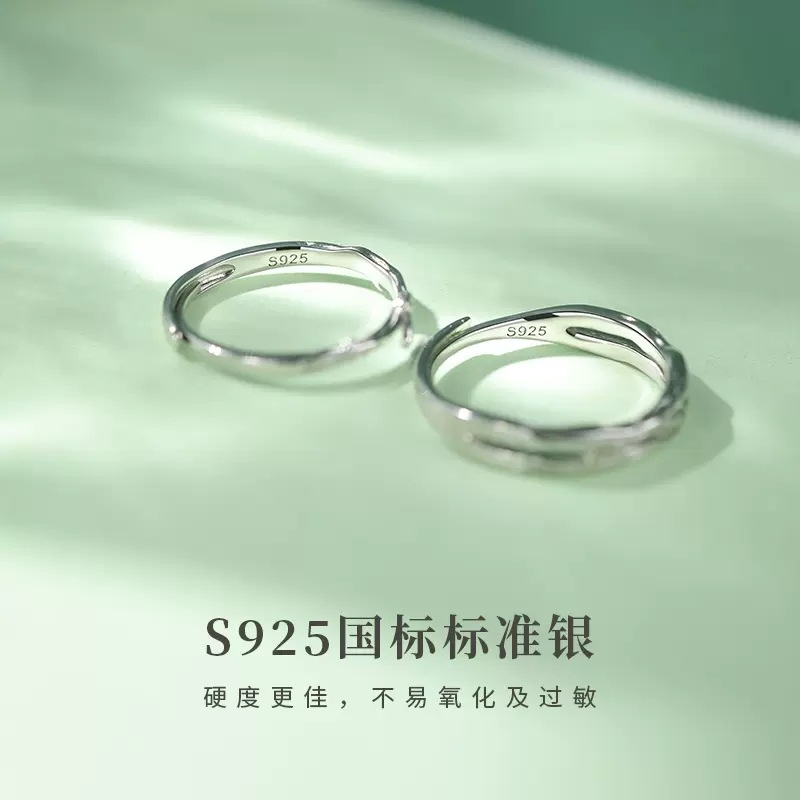 原创新款伴随情侣戒指男女纯银对戒简约轻奢百搭开口可刻字送女友