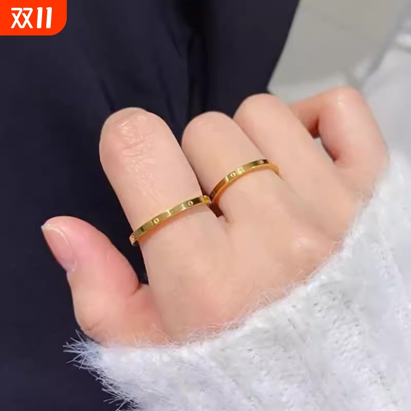 可水洗/百搭素圈戒指简约轻奢精致情侣对戒食指尾戒指环结婚钛钢