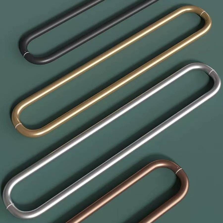 轻奢玻璃大门拉手黑色不锈钢弯管商铺酒店实木门把手金色对装