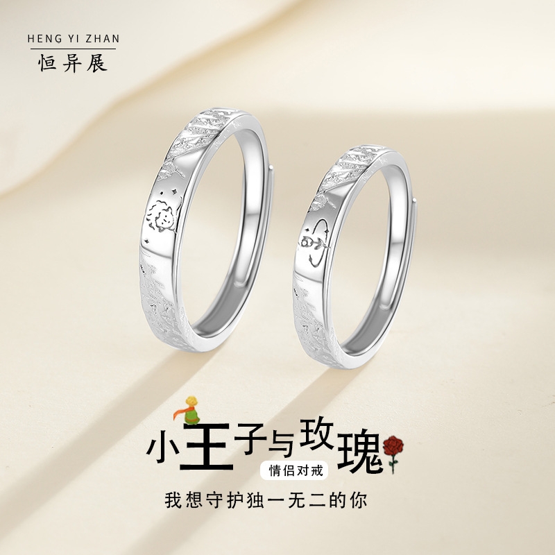 玫瑰花与小王子足银情侣对戒轻奢高级感纯银999新款戒指韩版潮流