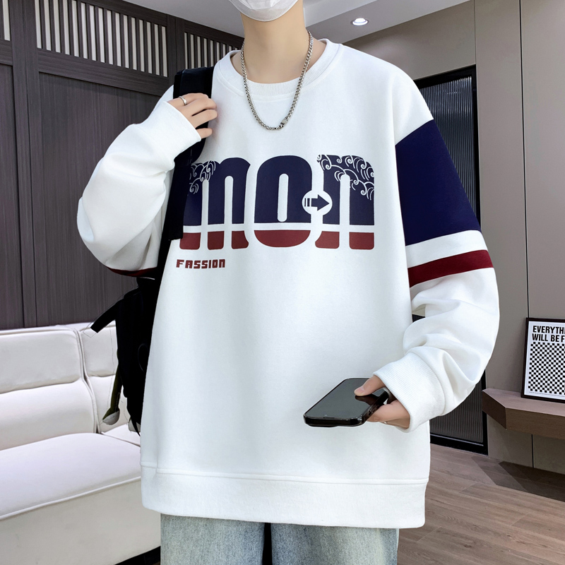 字母印花卫衣男春秋款圆领长袖t恤男休闲宽松青少年春季新款上衣T