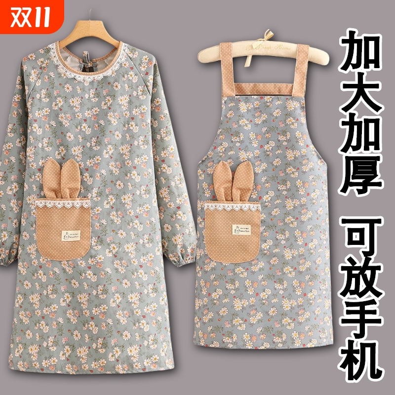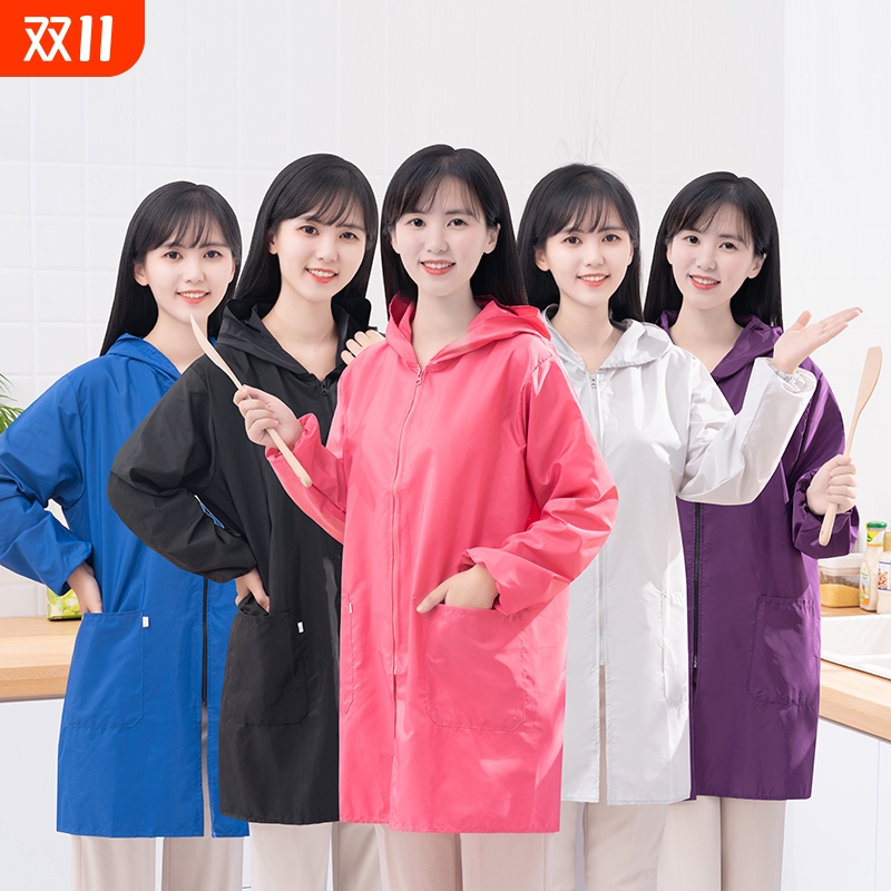 新款长袖罩衣工作服女家用厨房防水围裙加绒加厚冬季上班外套防油