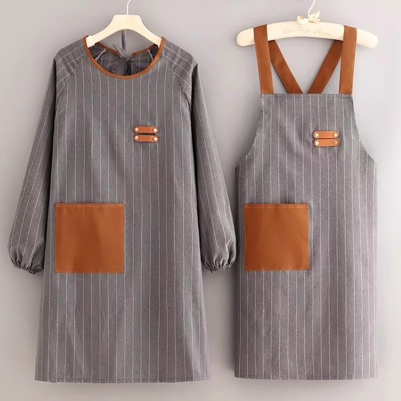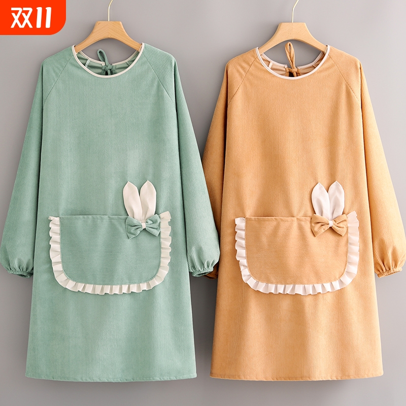 新款条绒长袖罩衣家用厨房防水防污防油围裙可爱洋气上班工作服