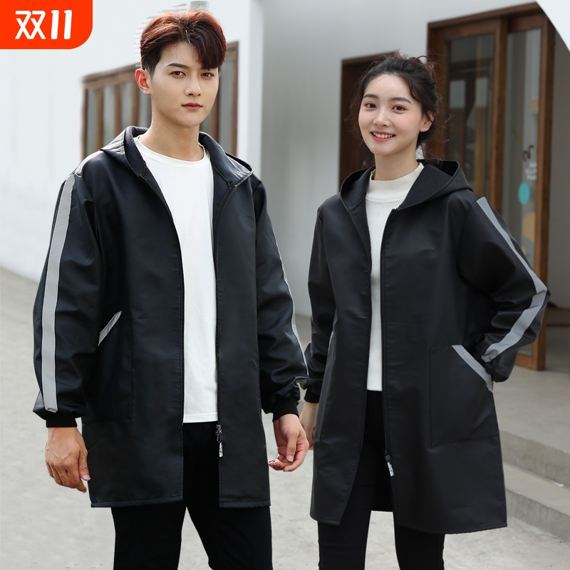 加绒加厚罩衣防水防油污围裙工作服冬季外穿带袖耐磨耐脏厨房家用