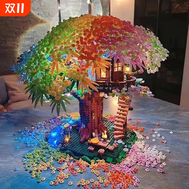 彩虹樱花树屋兼容乐高积木拼装玩具高难度巨大型建筑拼图女孩礼物