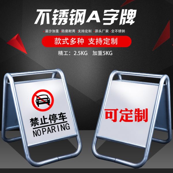 不锈钢停车牌请勿泊车 专用车位已满小心地滑禁止停车警示牌A字牌