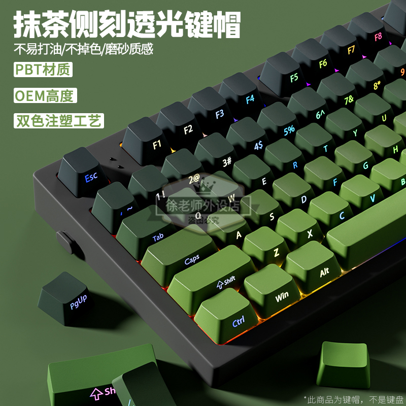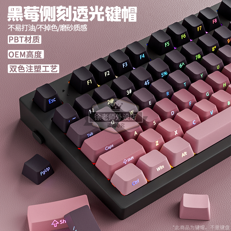 雾蓝侧刻透光键帽PBT材质OEM高度
