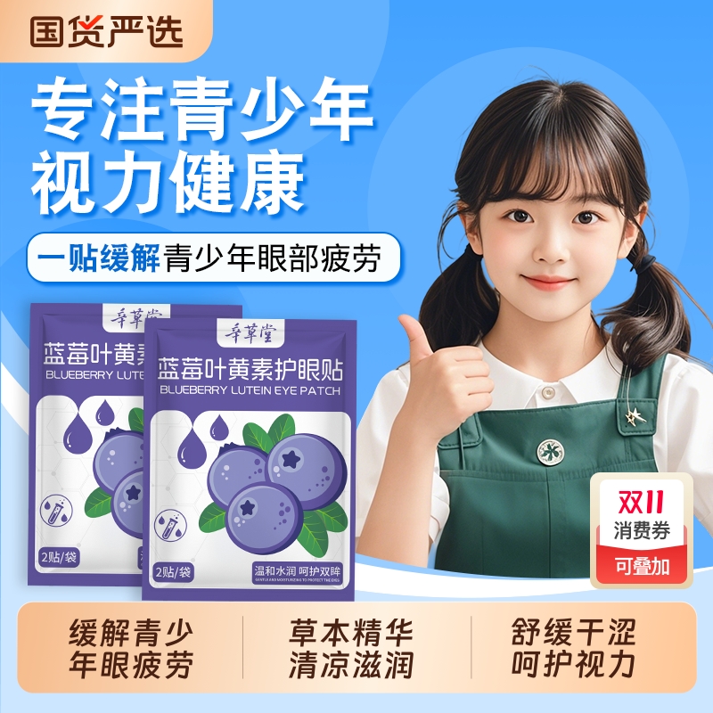 叶黄素蓝莓护眼贴缓解眼疲劳眼周干涩儿童青少年穴位冷敷润目明贴