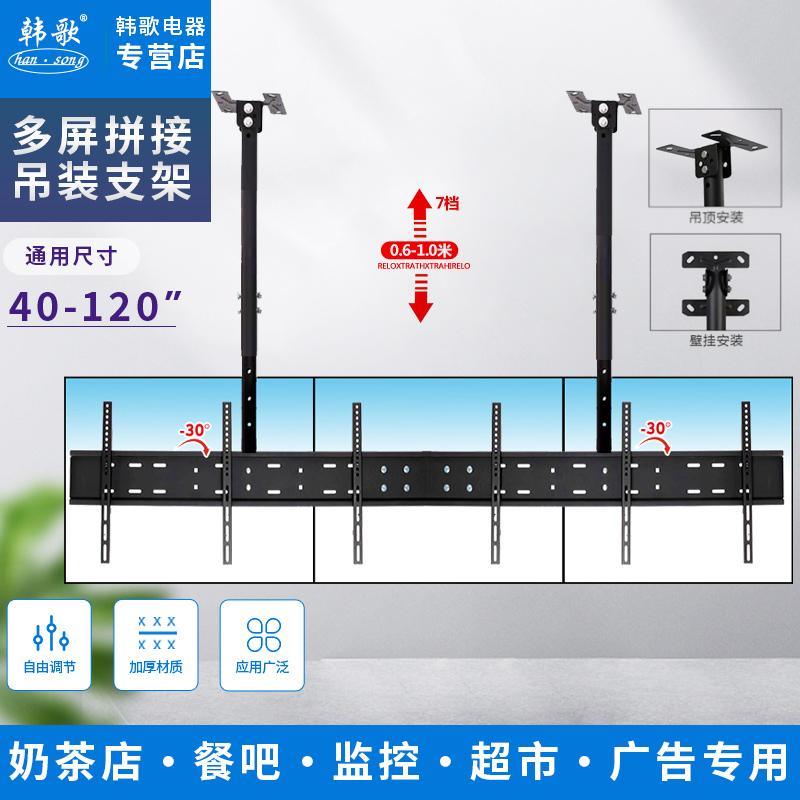 多屏并列吊装挂架奶茶店餐吧等伸缩旋转吊顶支架多屏拼接吊装挂架