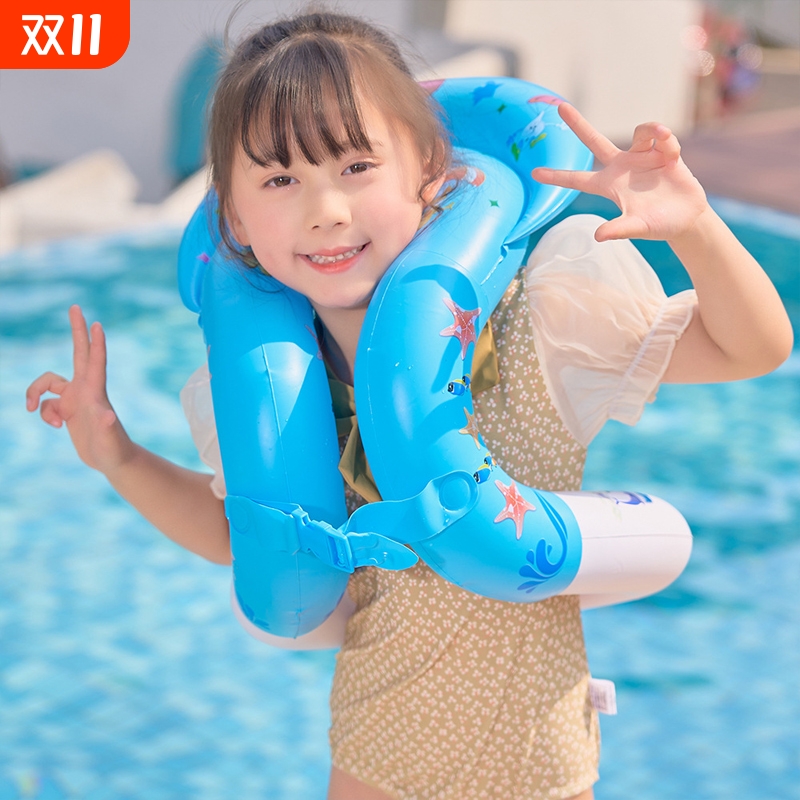 穿戴式儿童游泳圈泳池者形浮圈充气浮力背心加厚泳圈防侧翻双层