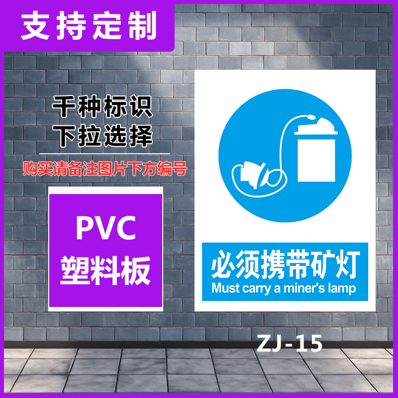 必须携带矿灯警示标识牌工厂车间安全生产禁止吸烟严禁烟火提示标识消