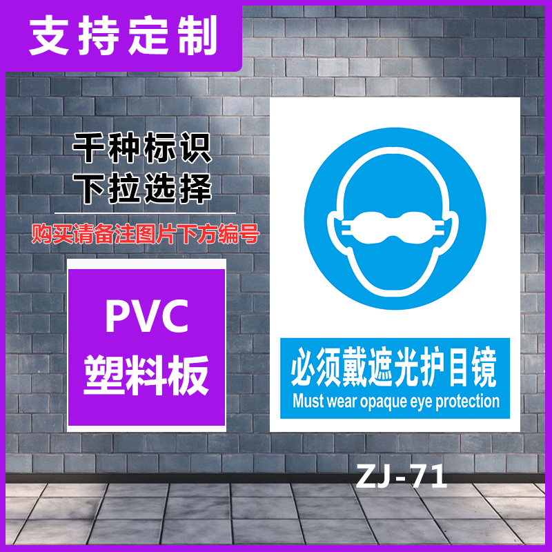 必须戴遮光护目镜警示标识牌工厂车间安全生产禁止吸烟严禁烟火提示标
