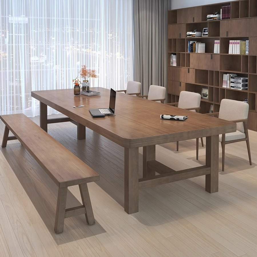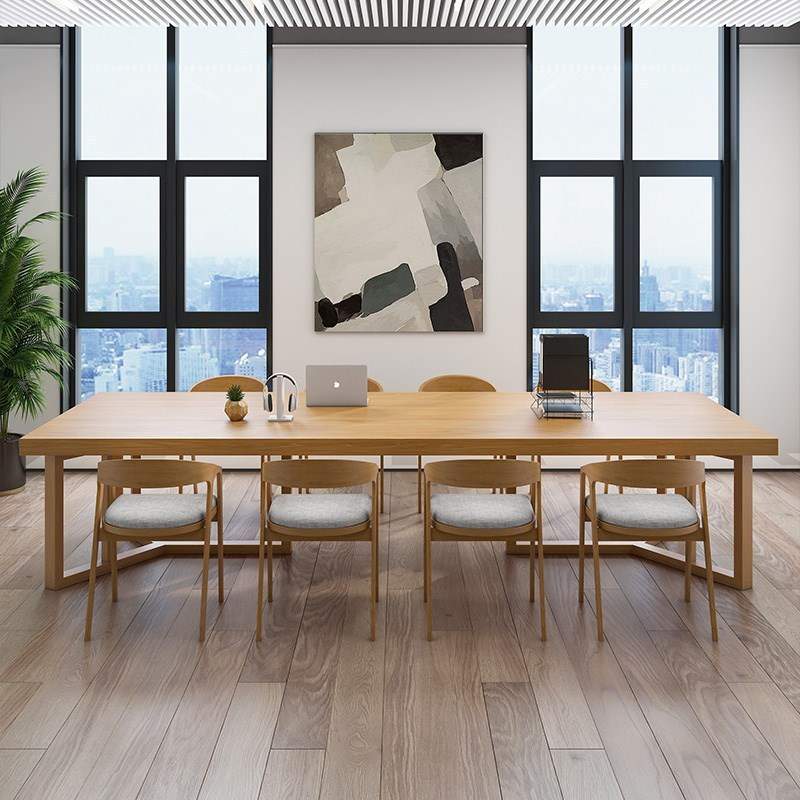 现代原木会议桌长条桌 简约大型工作室接待培训台长方形办公桌椅