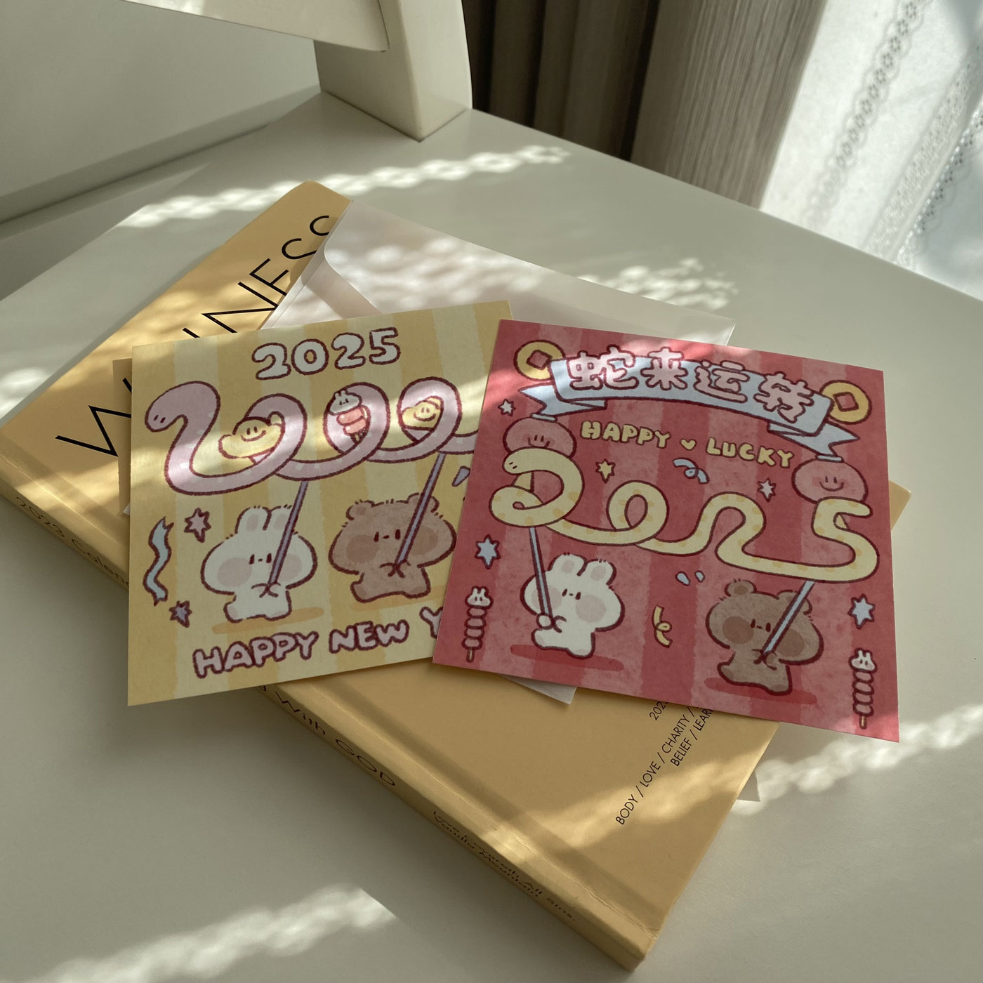 蛇来运转2025新年快乐贺卡/明信片/装饰卡片