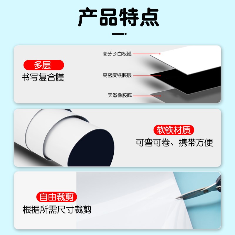 软白板墙贴磁性可移除不伤墙家用儿童涂鸦软小黑板磁铁贴片磁吸力