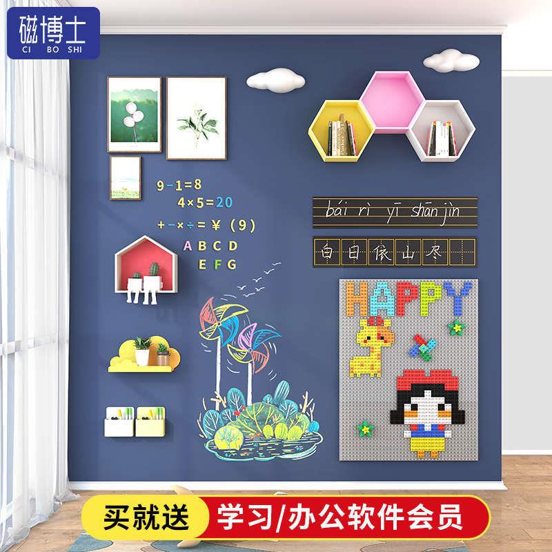 磁博士双层磁性黑板墙贴家用儿童可擦涂鸦墙软白板自粘式磁力宝宝