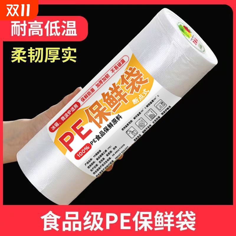 一次性pe平口保鲜袋密封袋食品级断点式家用食品袋超市商用塑料袋