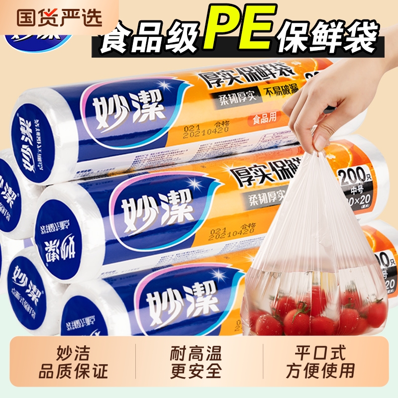 保鲜袋食品级冰箱手撕袋加厚家用一次性平口专用超大密封收纳防水