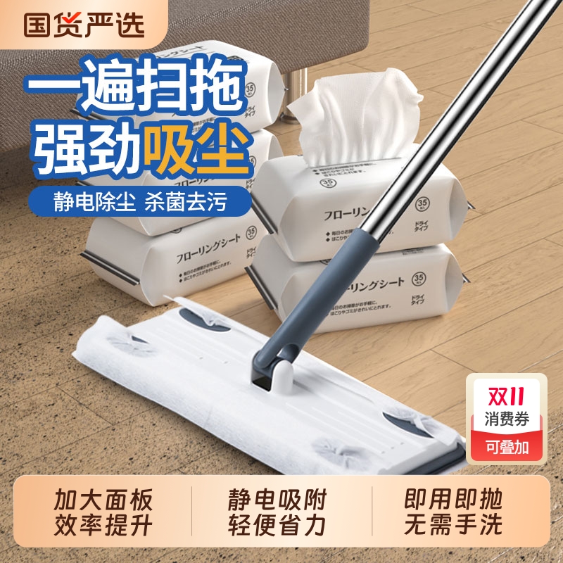静电除尘纸拖把免手洗平板拖把家用一拖净夹布一次性懒人拖地神器