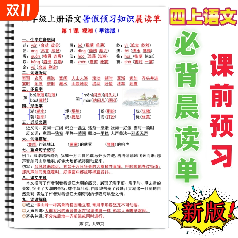 25秋人教版三四年级上册语文1-26课必背知识晨读单课内重点内容