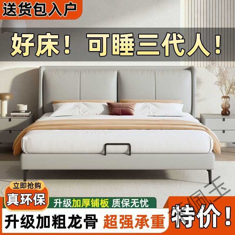 高 端意 式真 皮床现 代简约主 卧双 人床1.8米北欧皮艺床软