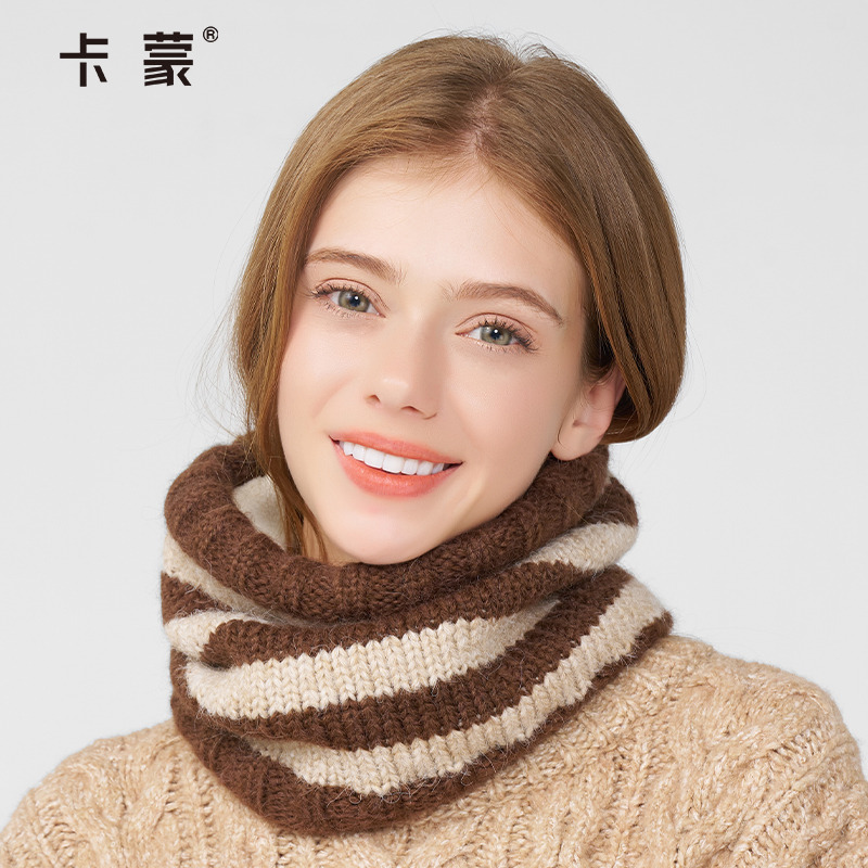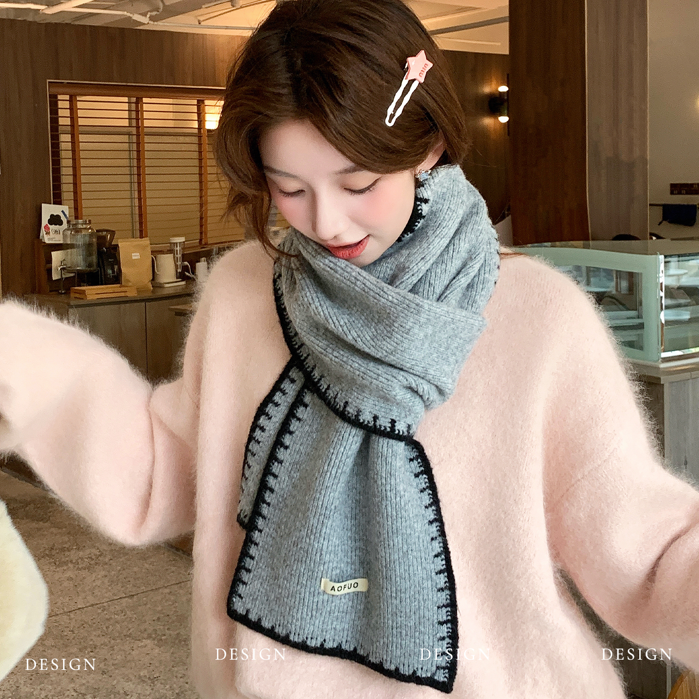 围巾女秋冬高级感御寒保暖拼色针织交叉毛线时尚可爱少女围脖冬天