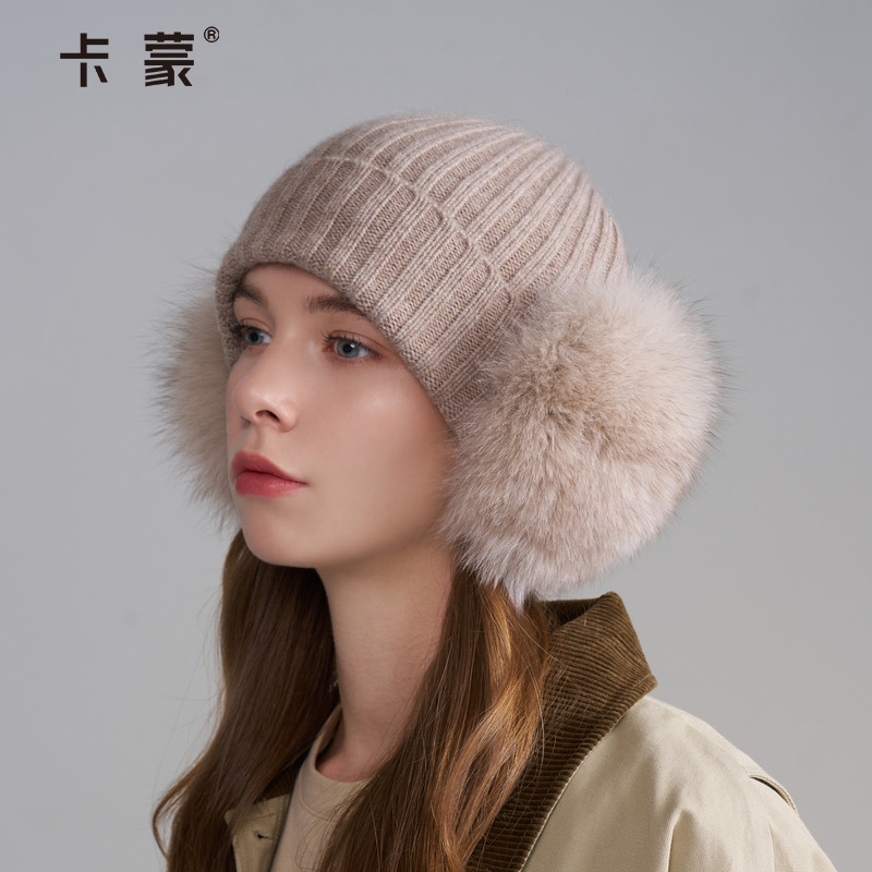 卡蒙高级感秋冬针织加绒毛绒渔夫帽女护耳防寒保暖彩色羊毛毛线帽