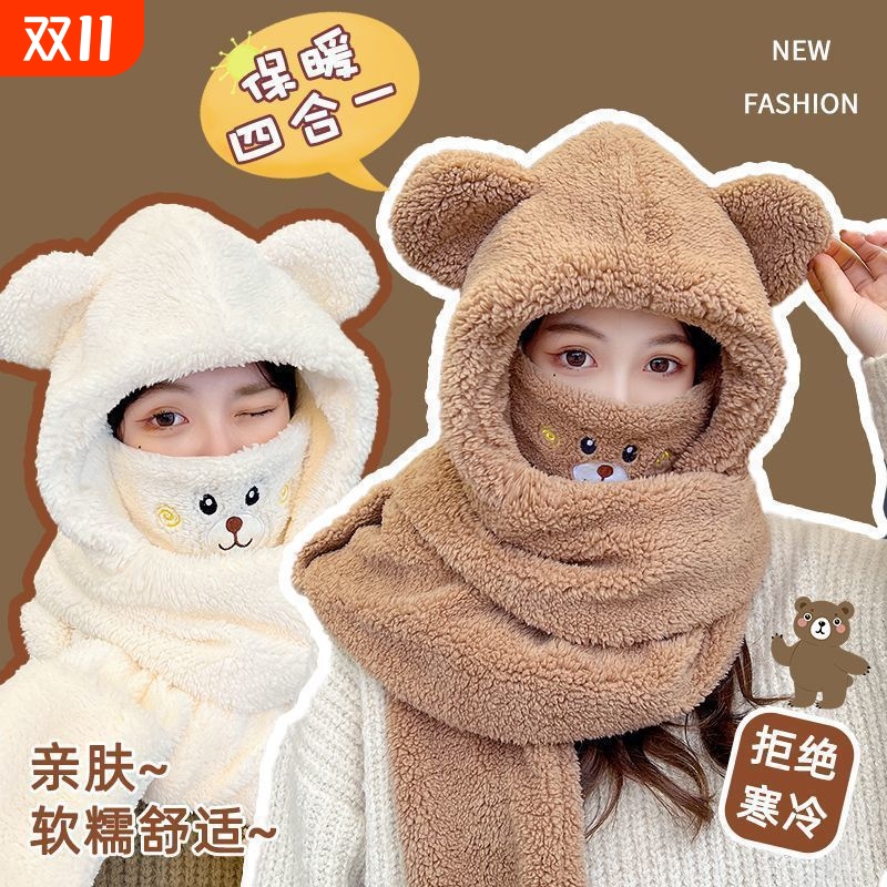 冬季保暖防风防寒护耳高级感新款可爱小熊帽子围巾一体口罩