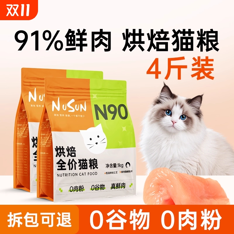 N90鲜肉烘焙猫粮4斤0谷0肉粉高肉